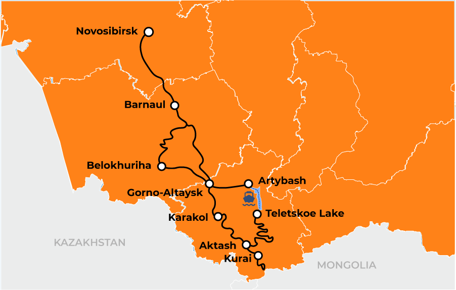 Novosibirsk – Belokurikha – Iogach –Teletskoe lake – Aktach – Seminsky pass – Barnaul – Novosibirsk