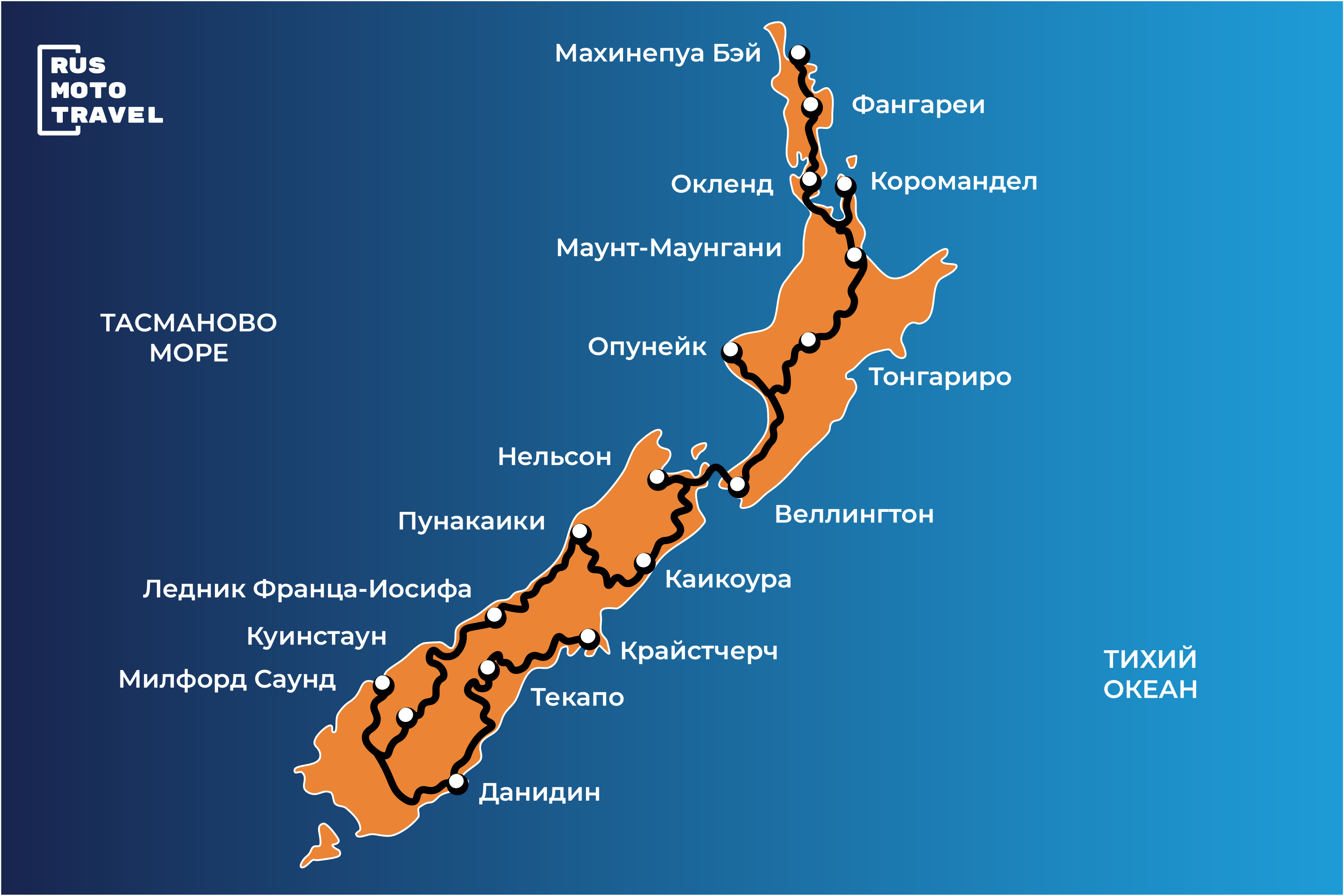 This is an extensive 21-day, one-way motorbike tour: we start in Auckland on the North Island and finish in Christchurch on the South Island. A 16-day route is also available; check the calendar and/or tours section.