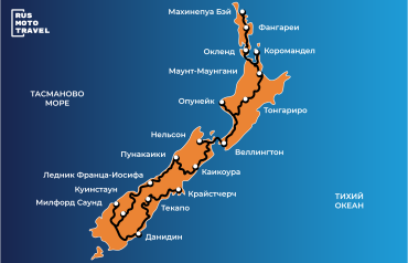 Auckland – Mahinepua – Whangarei – Coromandel Peninsula – Mount Maunganui – Tongariro – Opunake – Wellington – Nelson – Kaikoura – Punakaiki – Franz Josef Glacier – Queenstown – Milford Sound-Te Anau – Dunedin – Tekapo – Christchurch